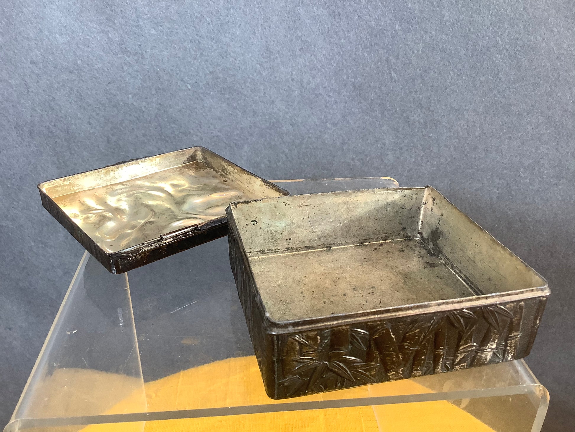 Small antimony box decorated with a dragon in bamboo.
