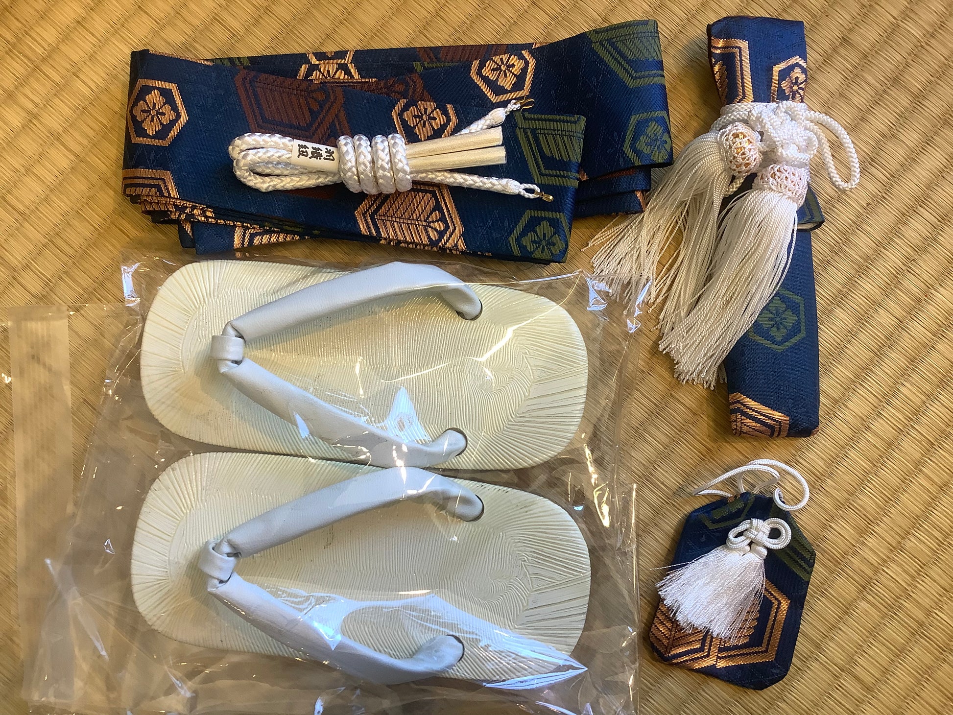 Shichi-Go-San set for boys. Six piece set. Hakama,zori,obi,amulet, haori hime and keikan.