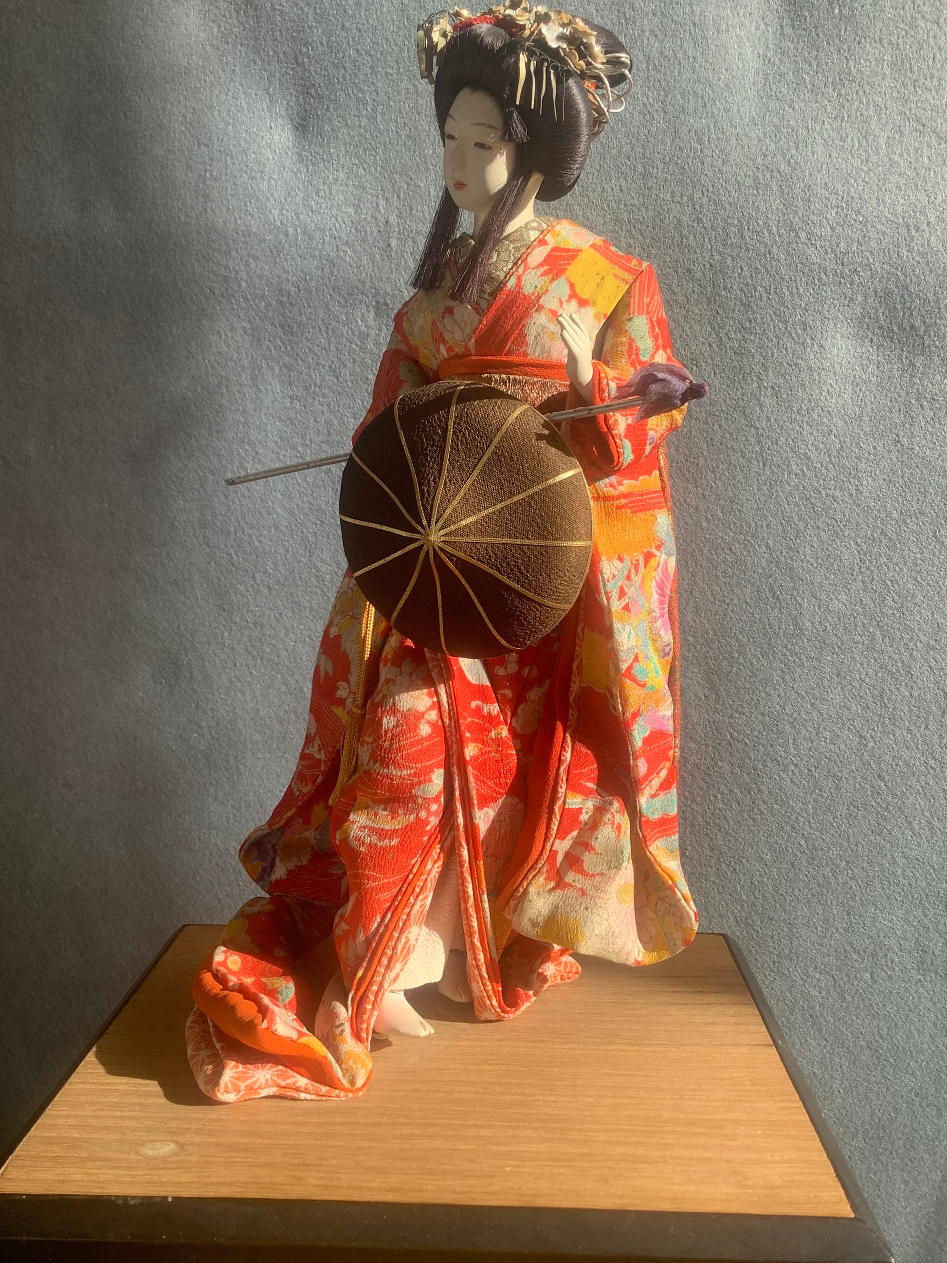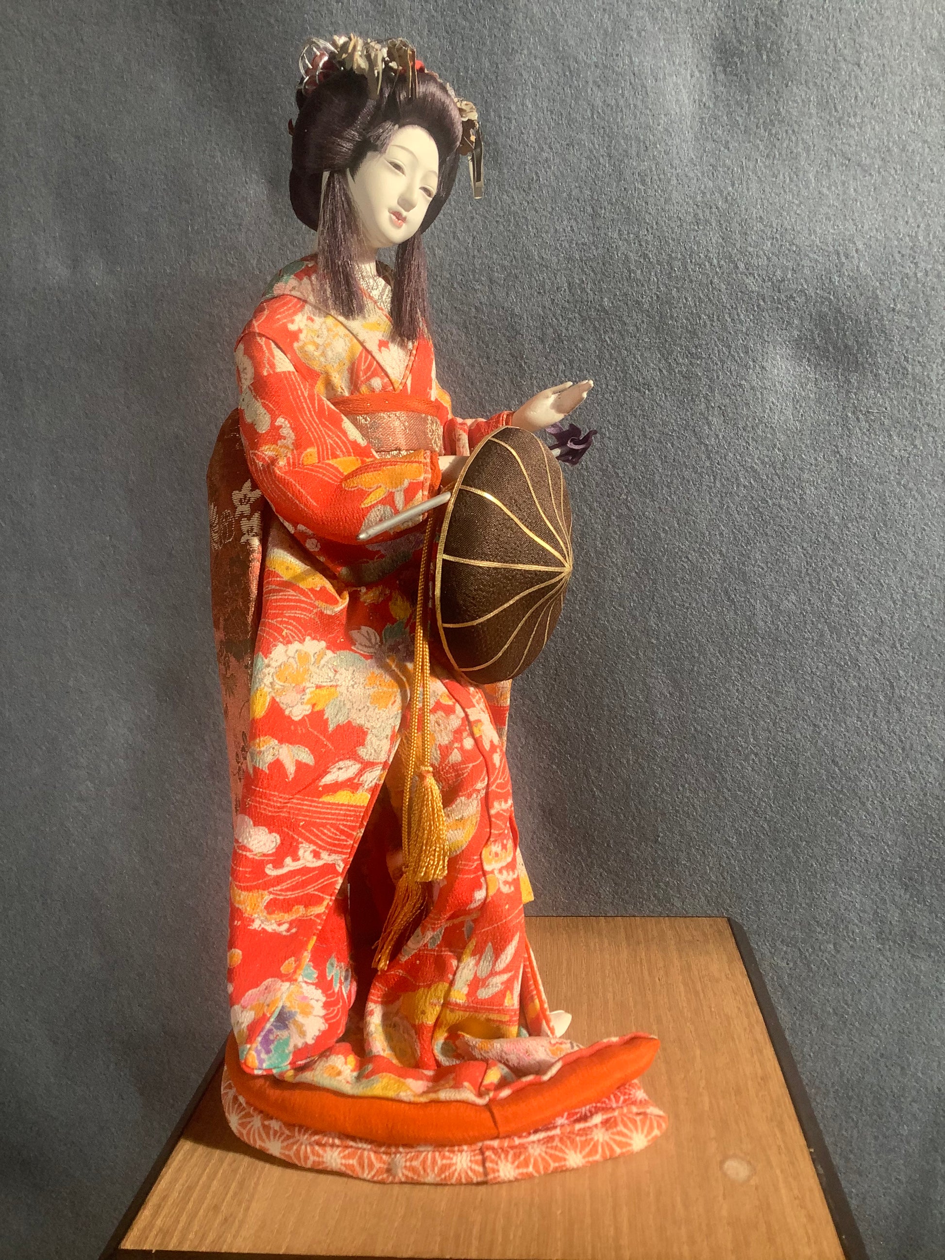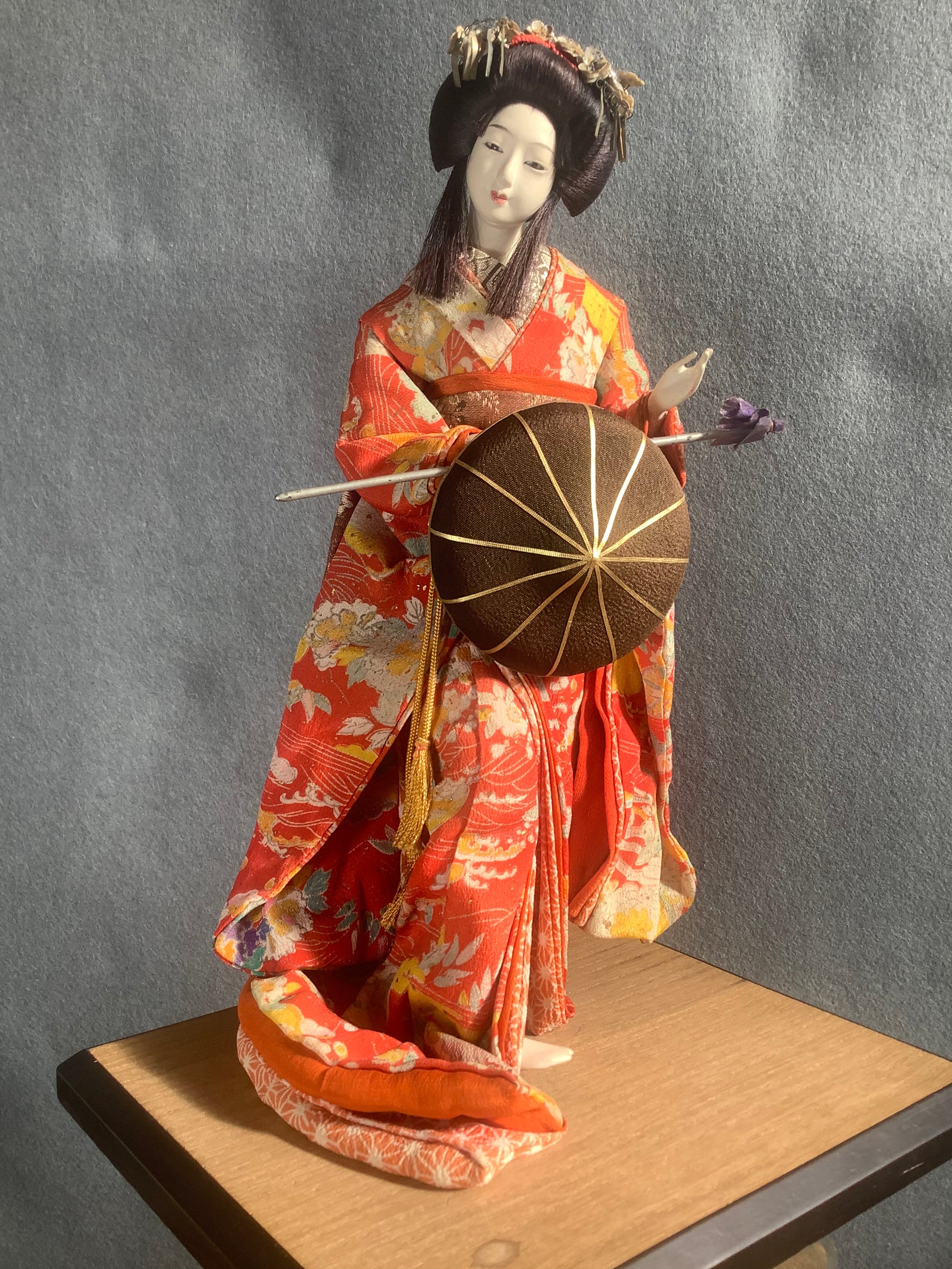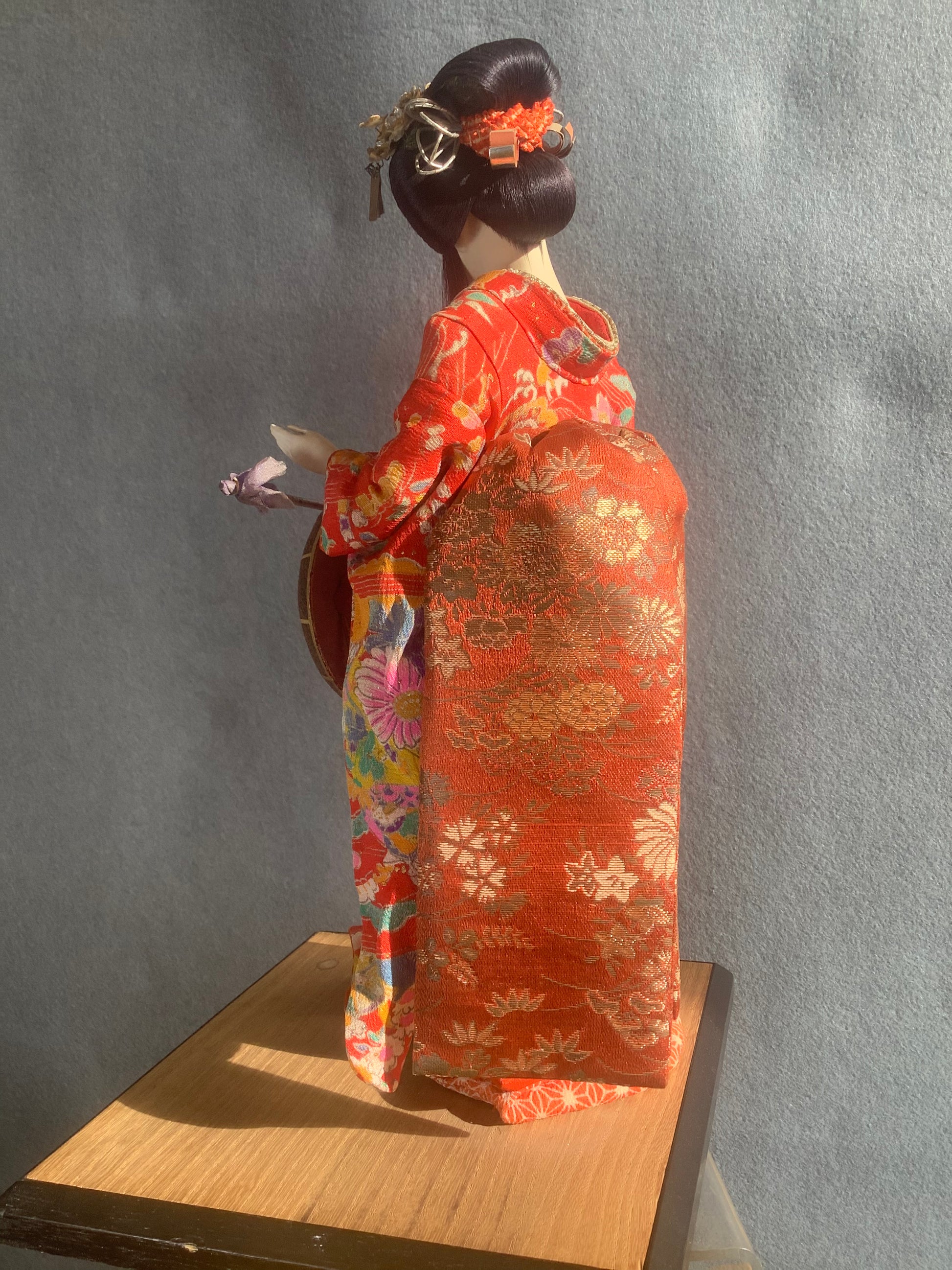 Hime, princess character doll. Silk kimono, flower kanzashi. Face and limbs are not gofun. Condition is excellent.