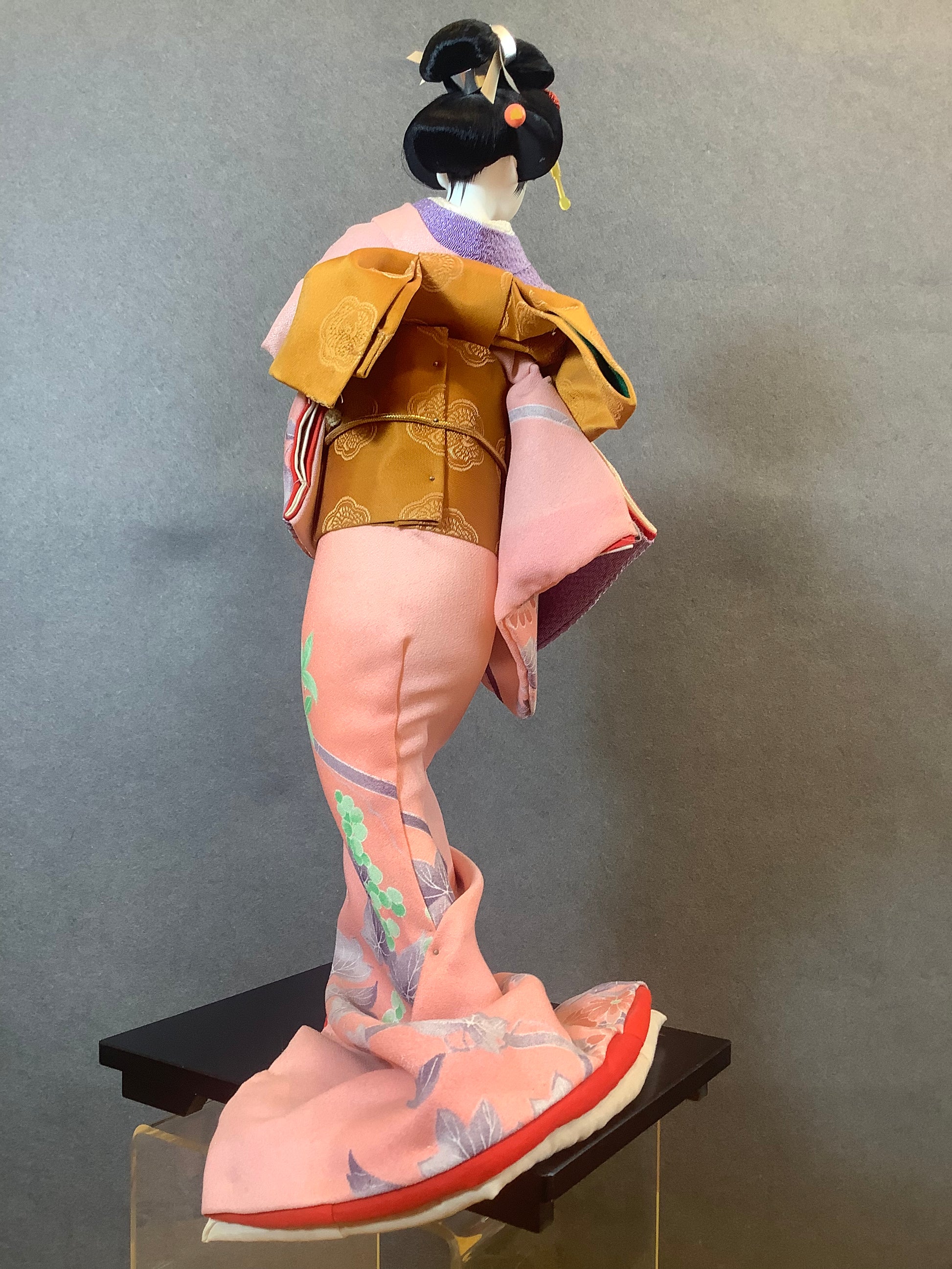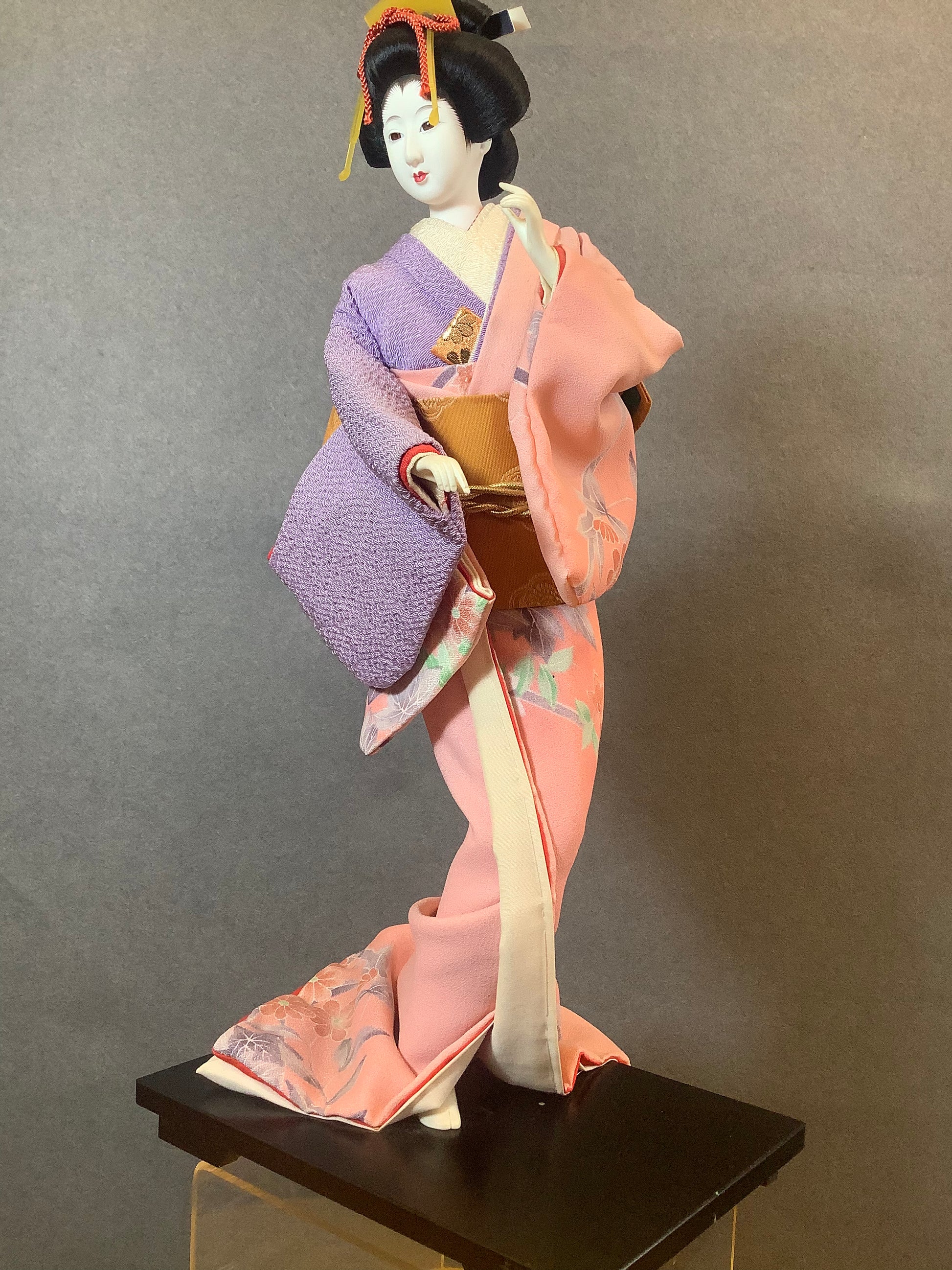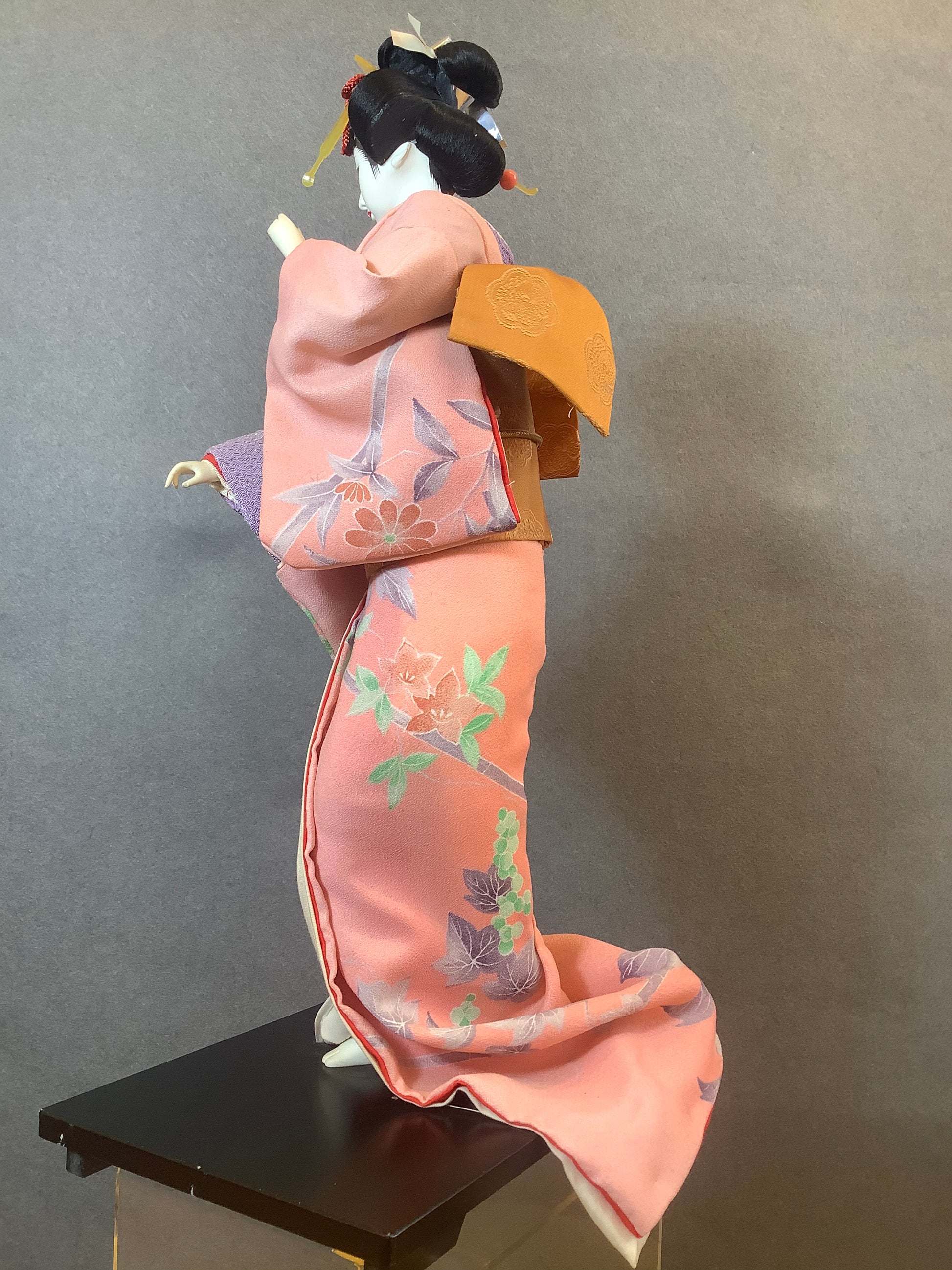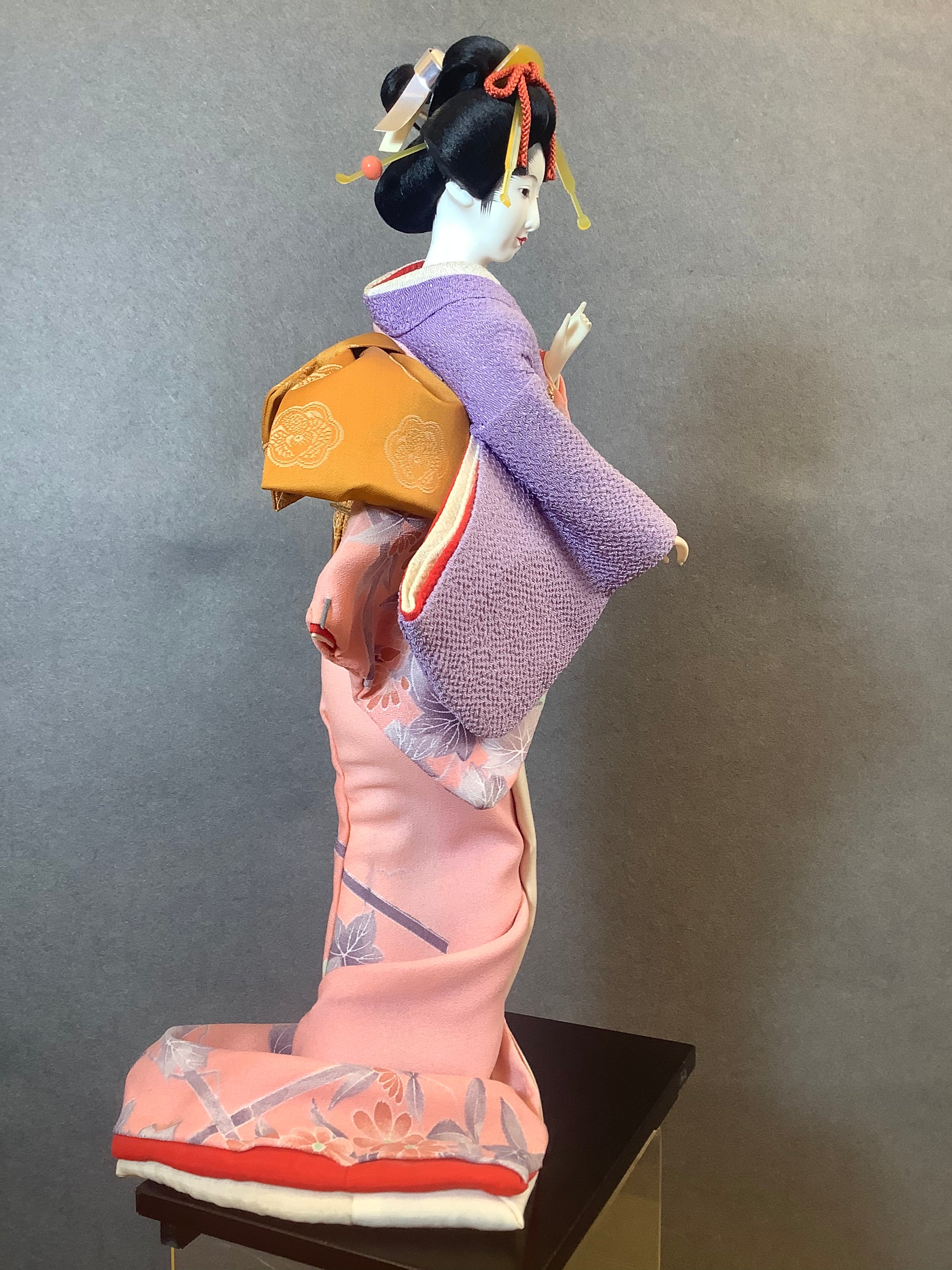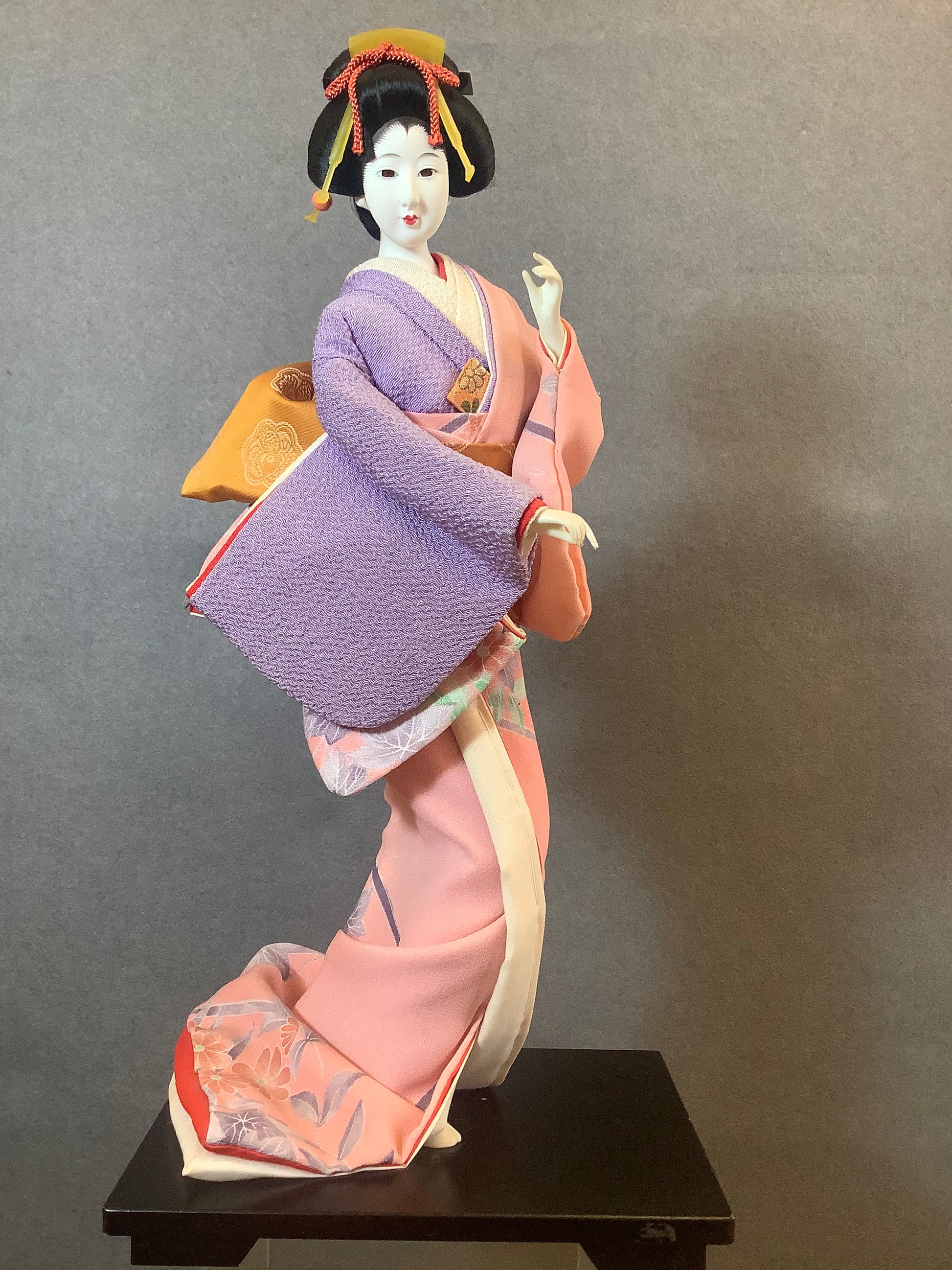 Large sized Geisha doll dressed in silk kimono. Condition is excellent.