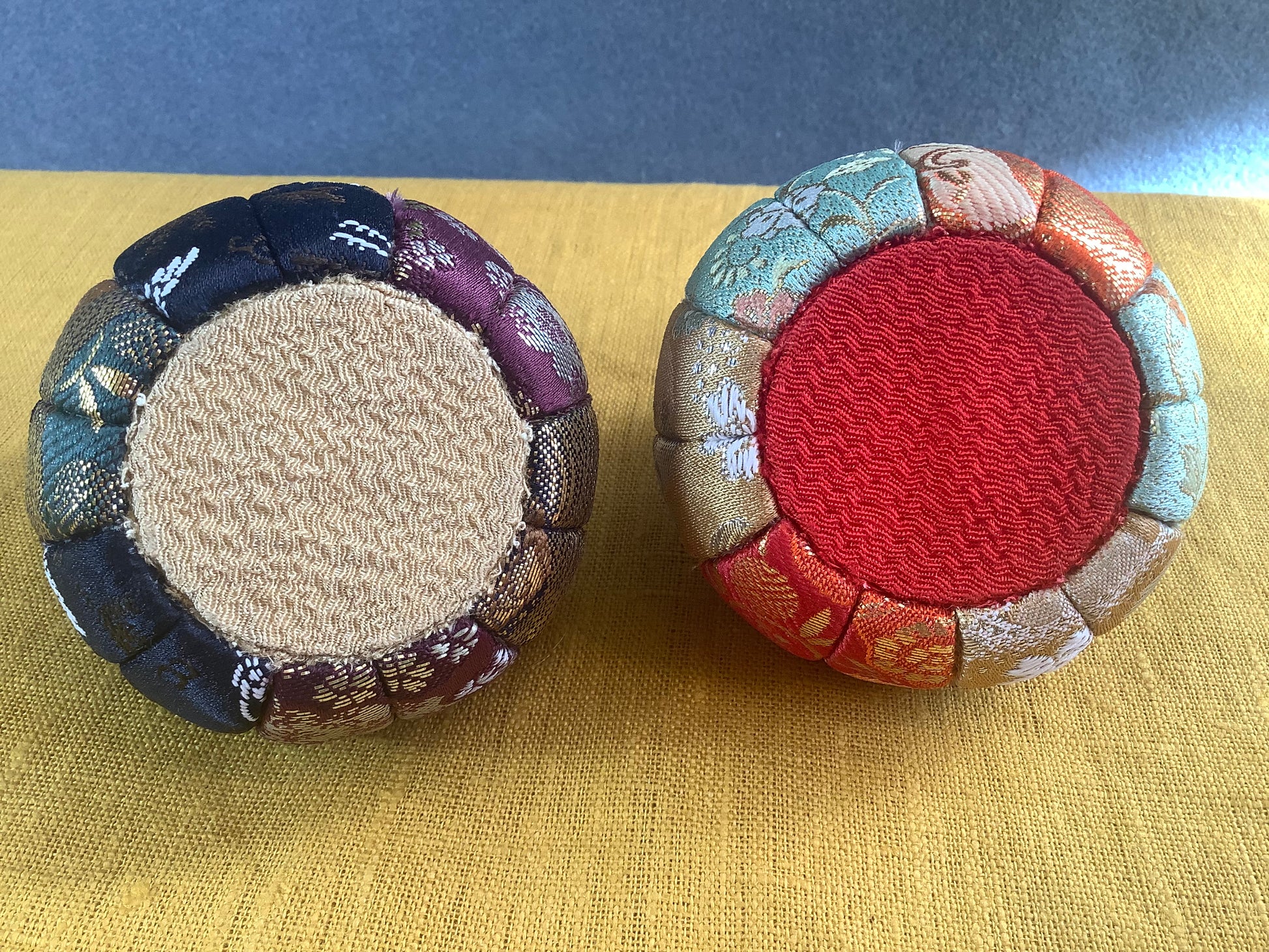 A pair of boy girl kimikomi dolls.silk brocade covered wood. Gofun faces. Slight fading, but otherwise in excellent condition.