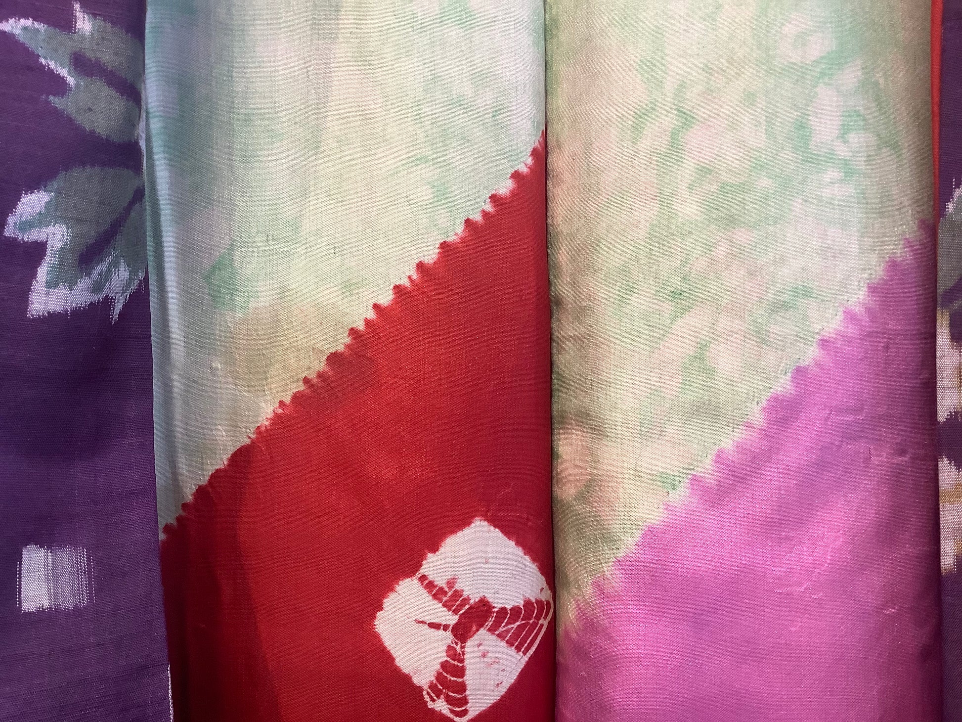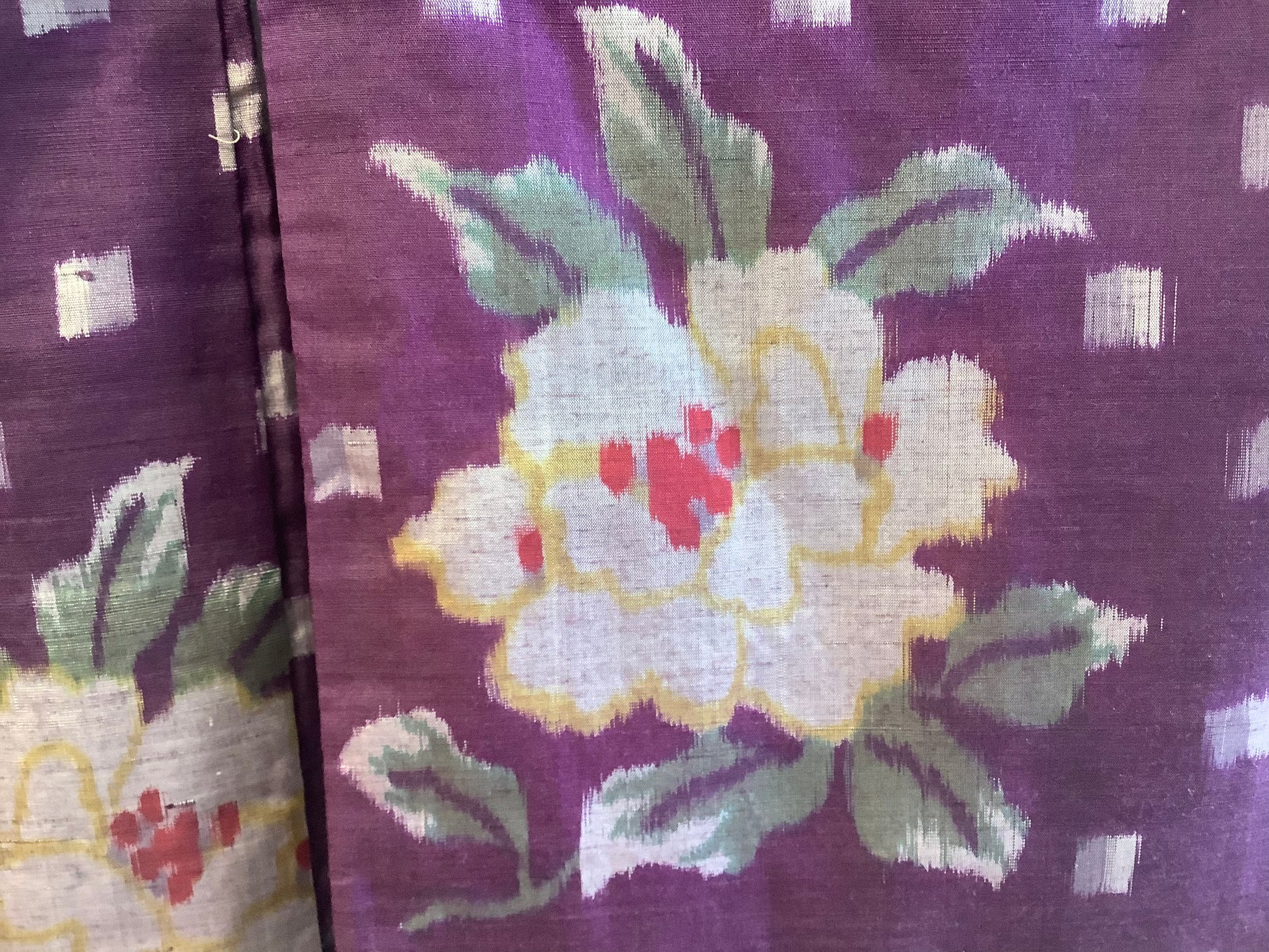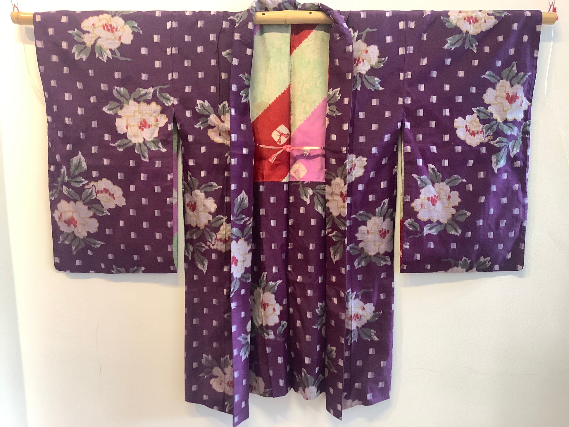 Pre war meisan haori, Taisho/early Shower period. Peony and square pattern. Slight mark on Shibori lining .