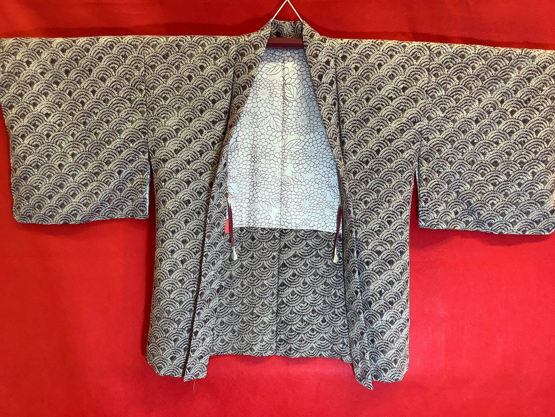 Full shibori, wave design silk haori in a gentle mushroom colour. Condition is excellent.