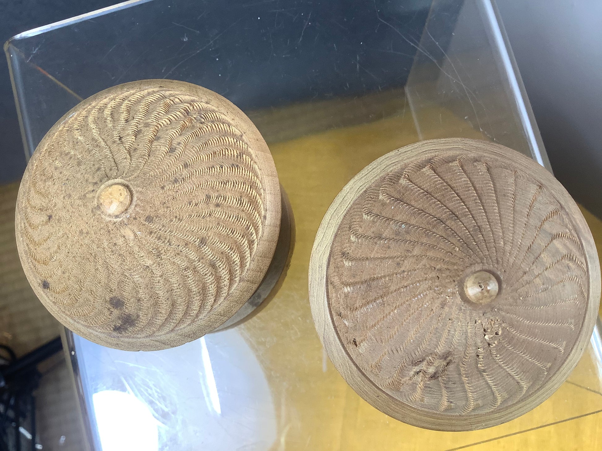 A pair of vintage 1950’s bobble head kokeshi dolls. Signed.