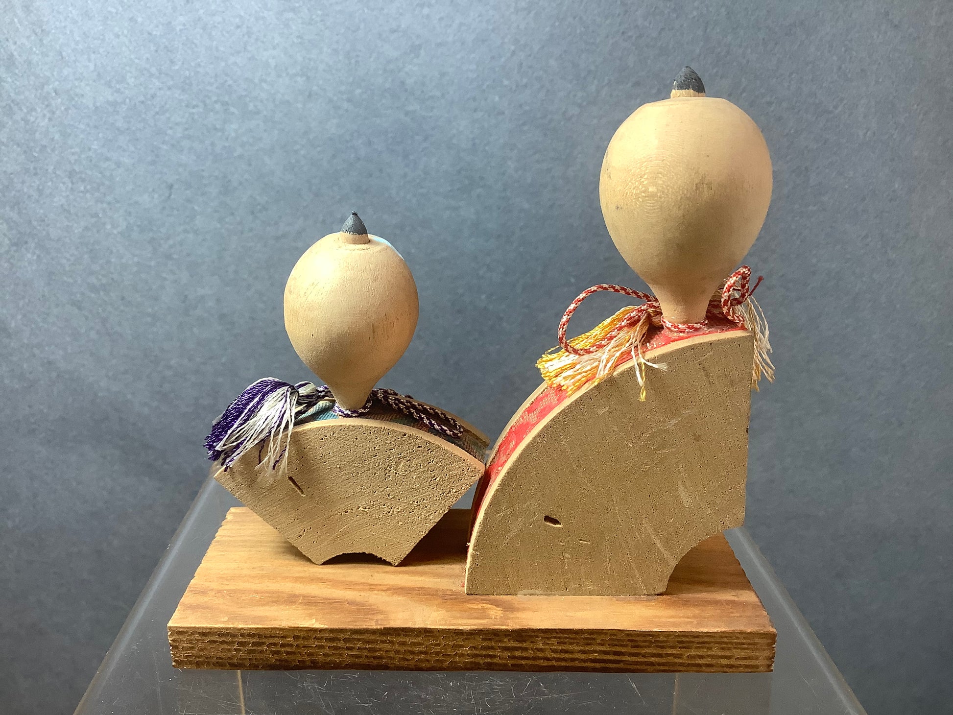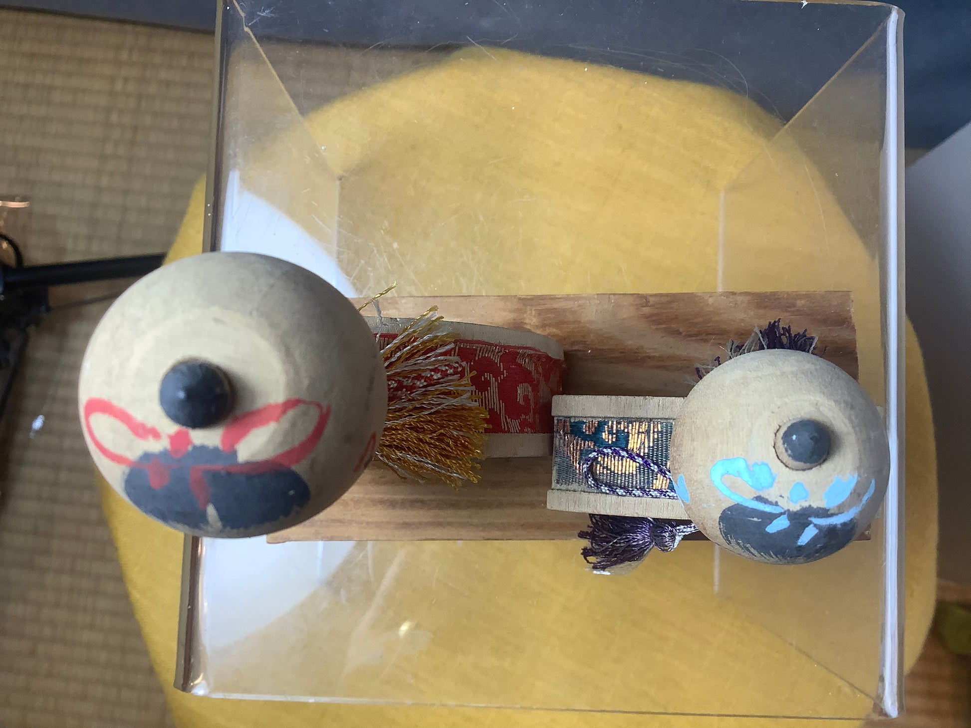 Pair of vintage kokeshi dolls .