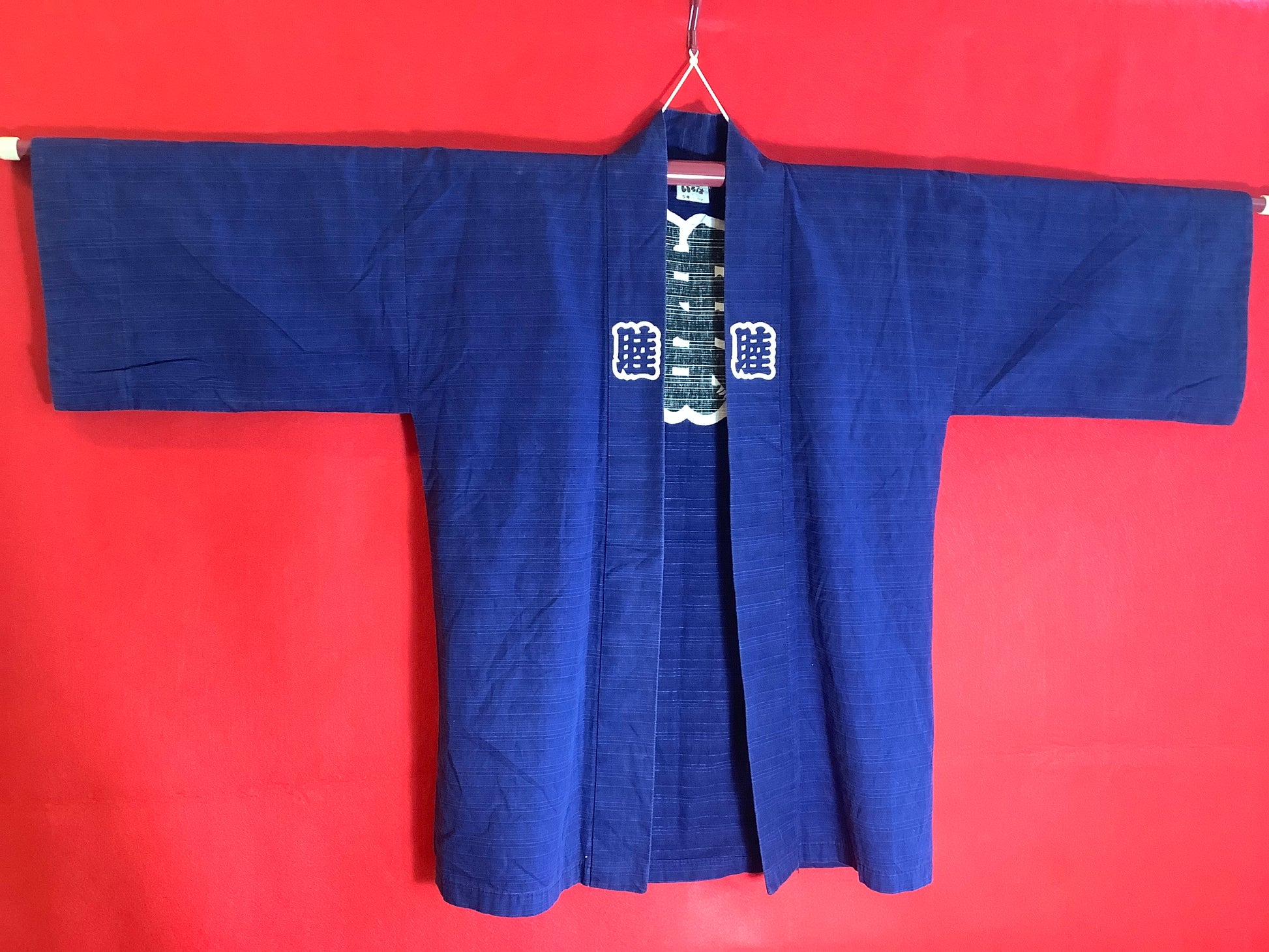 A bright deep blue tsmugi cotton matsuri jacket. The cuffs are lined in maroon. The cotton is a good medium weight. Condition is excellent.