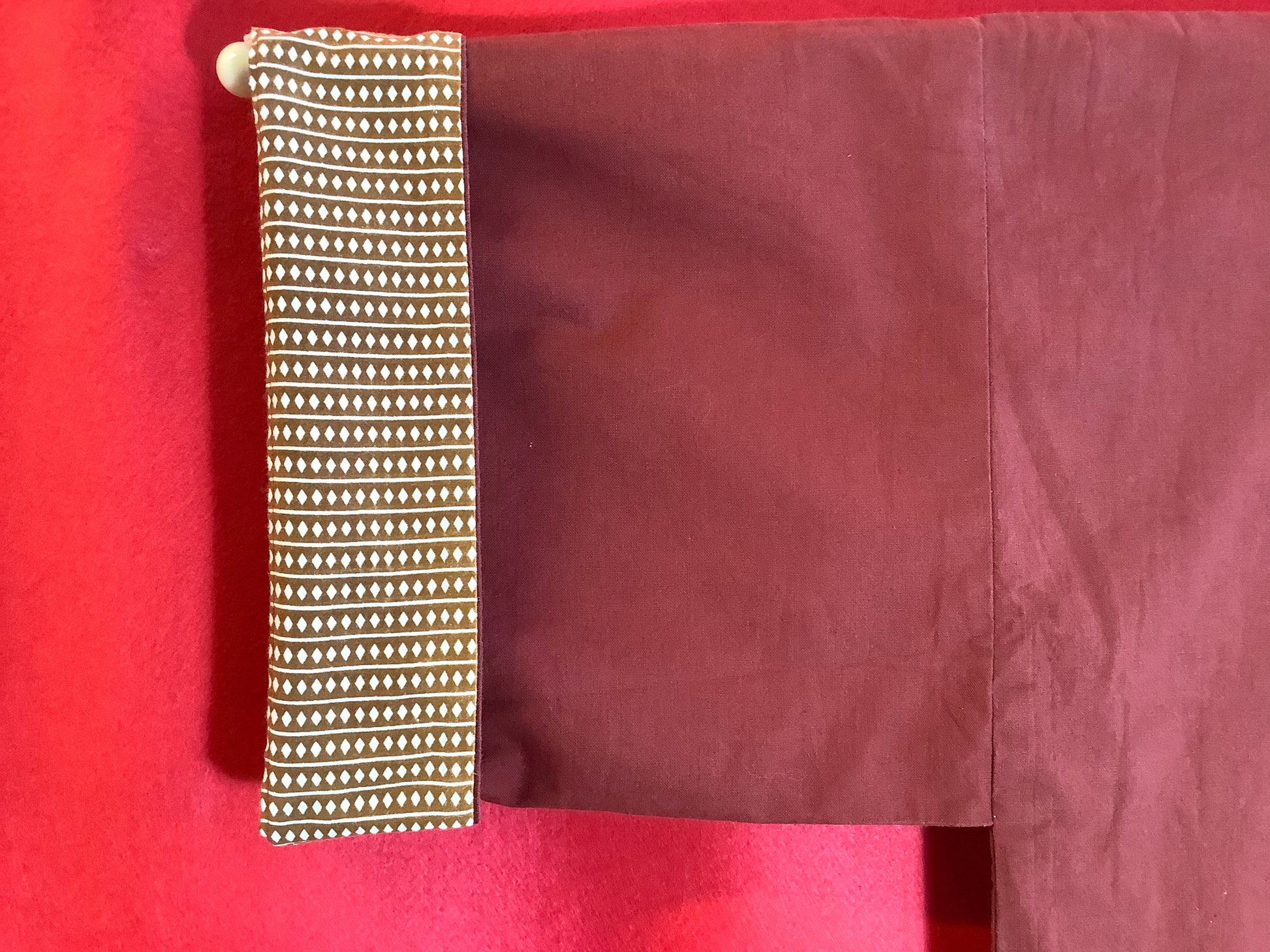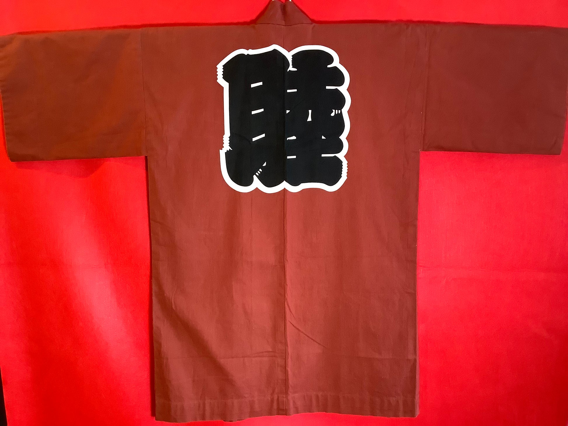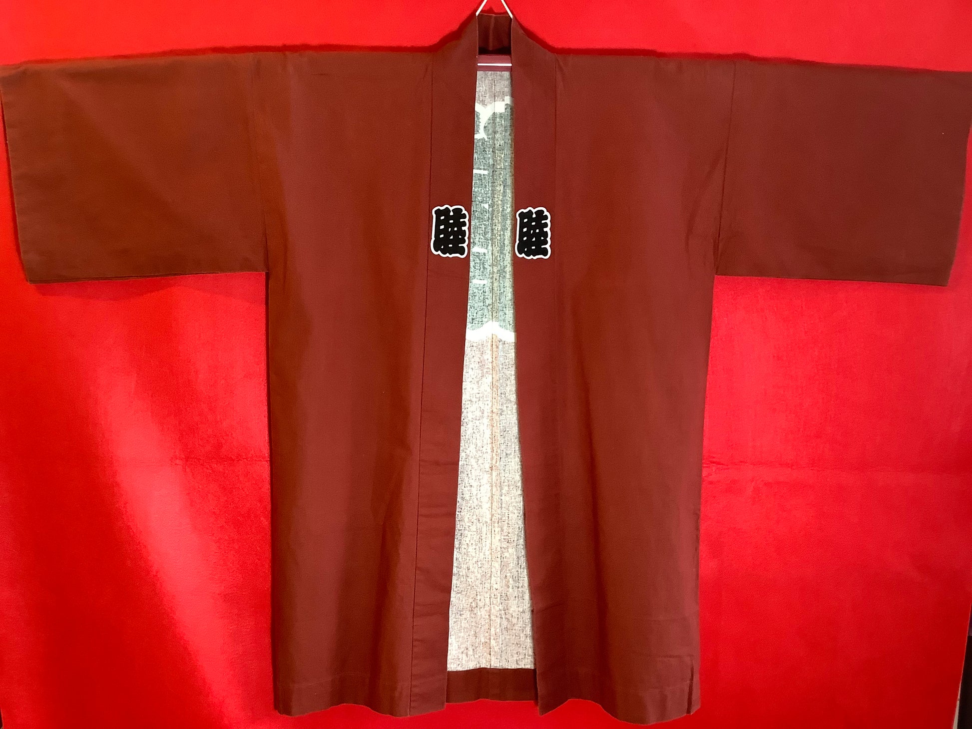 A longer length rust coloured matsuri jacket in heavy weight cotton with patterned cuff facings. Condition is excellent.