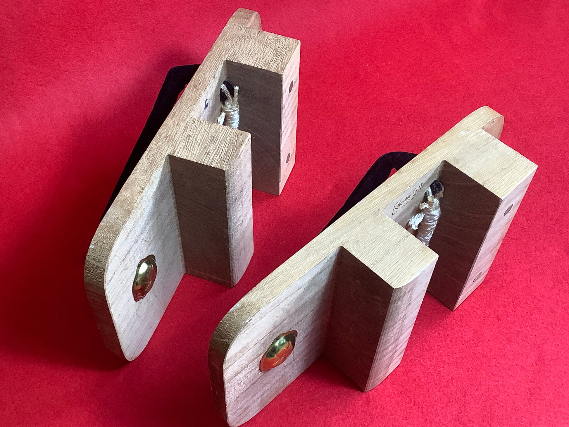 A pair of plain palonia wooden geta, unworn, Black velvet straps . Excellent wearable condition.