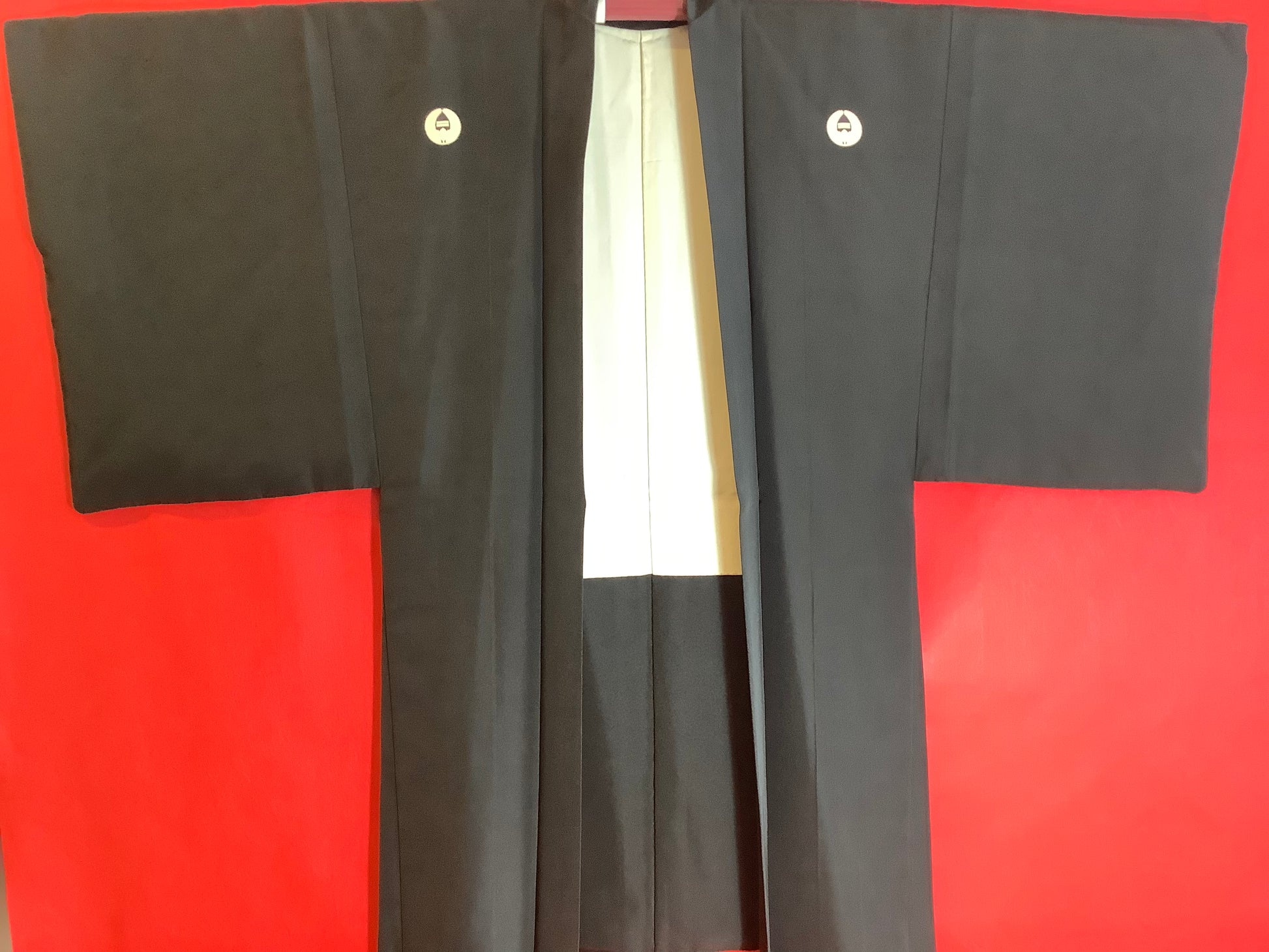 Heavy habutai silk formal mens haori. Longer than a usual haori. Five mon , plain black with off white lining. Condition is excellent.