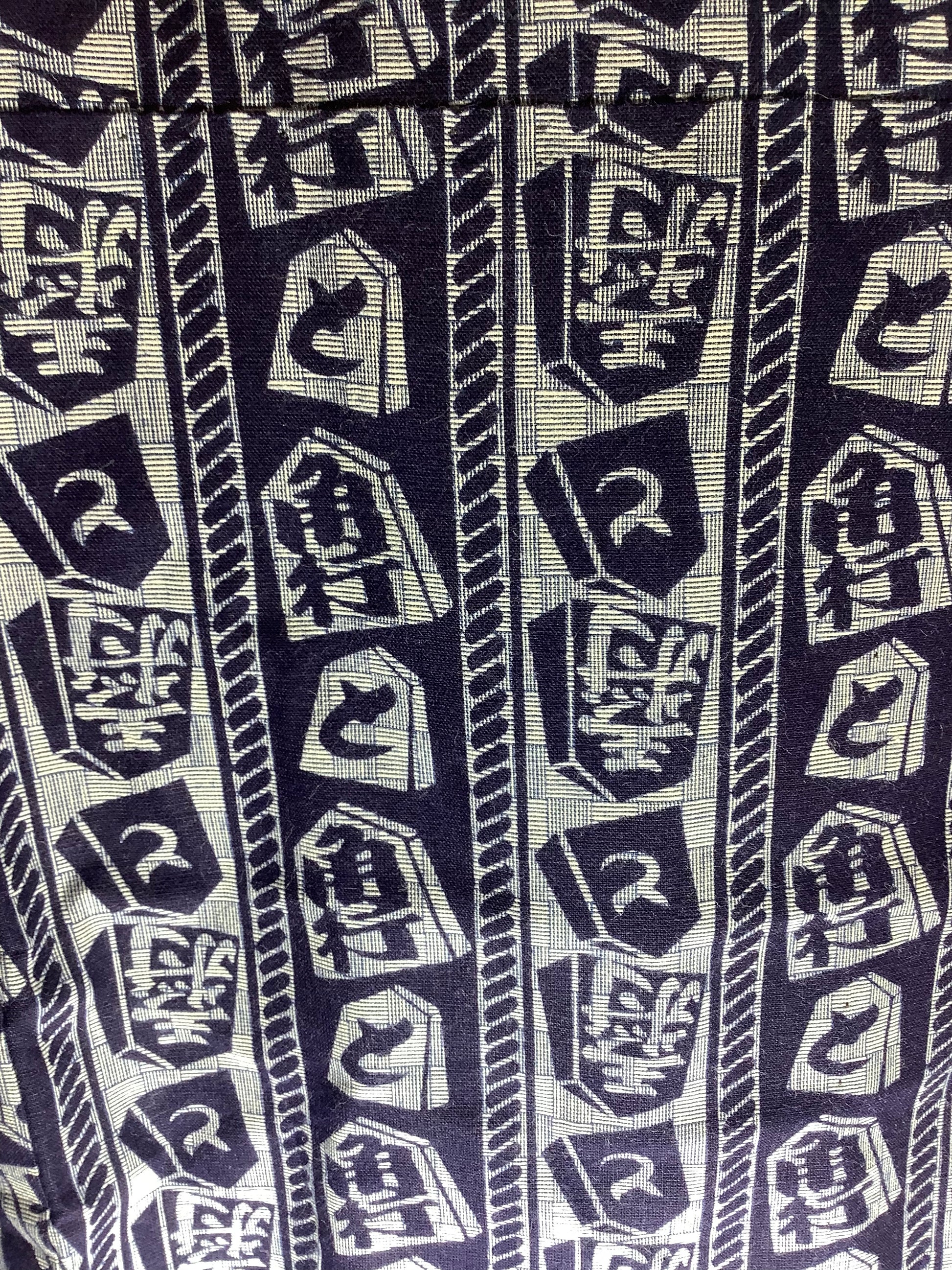 Indigo blue coloured pattern of Japanese chess pieces. Material is cotton. Condition is excellent.