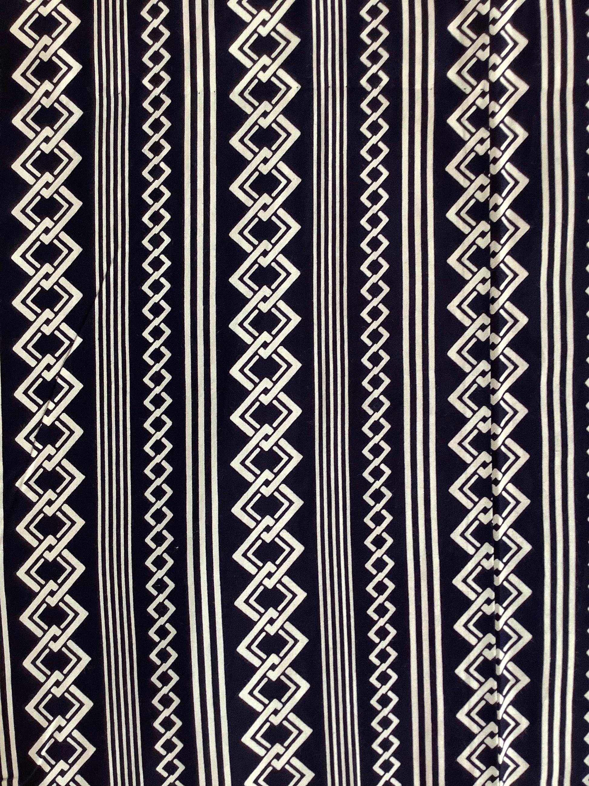 Chains and stripes in navy and white make this yukata a timeless classic design. Material is cotton and condition is excellent.
