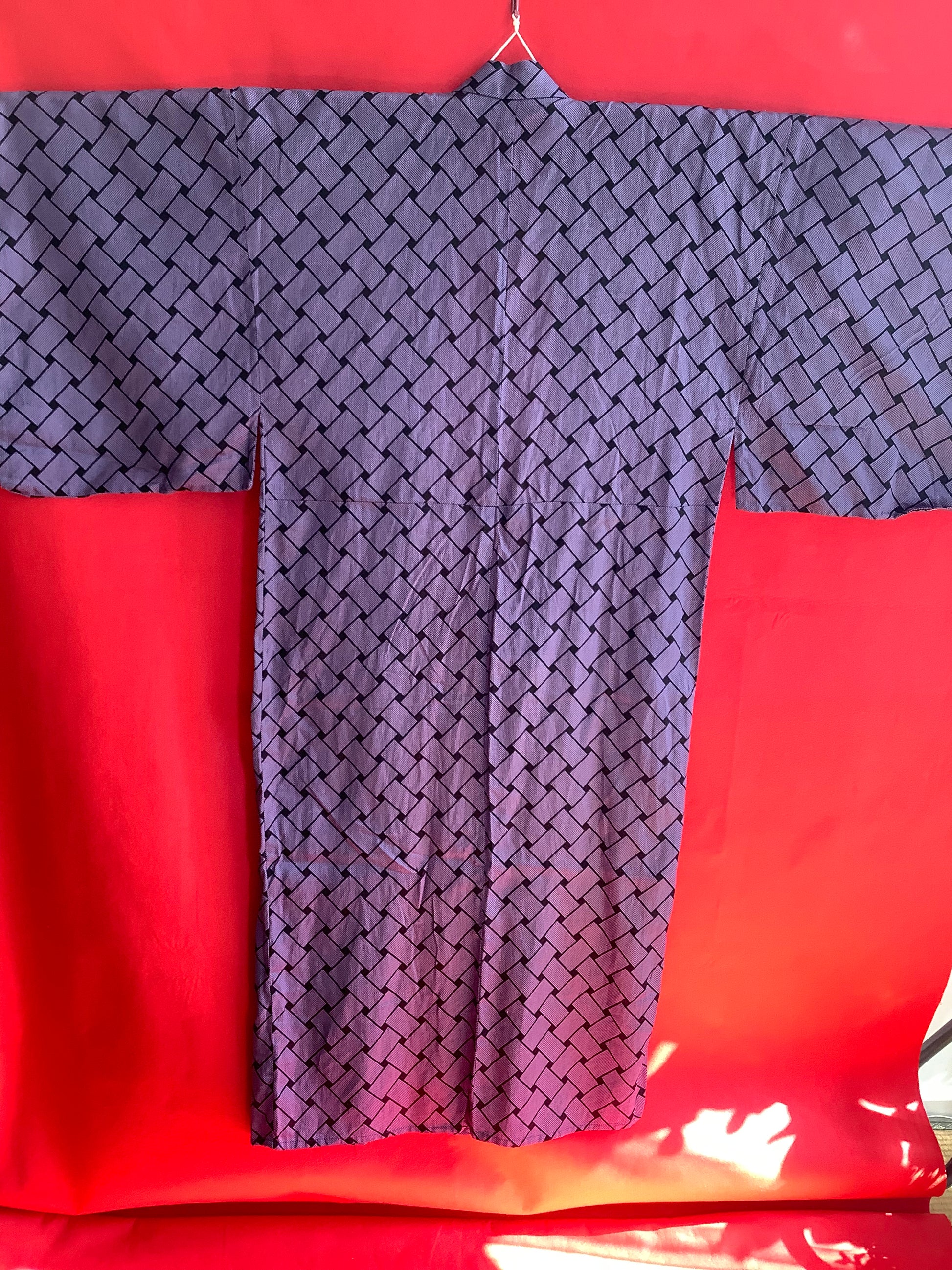 Basket weave design in purple and black. 80% cotton yukata. Condition is excellent.