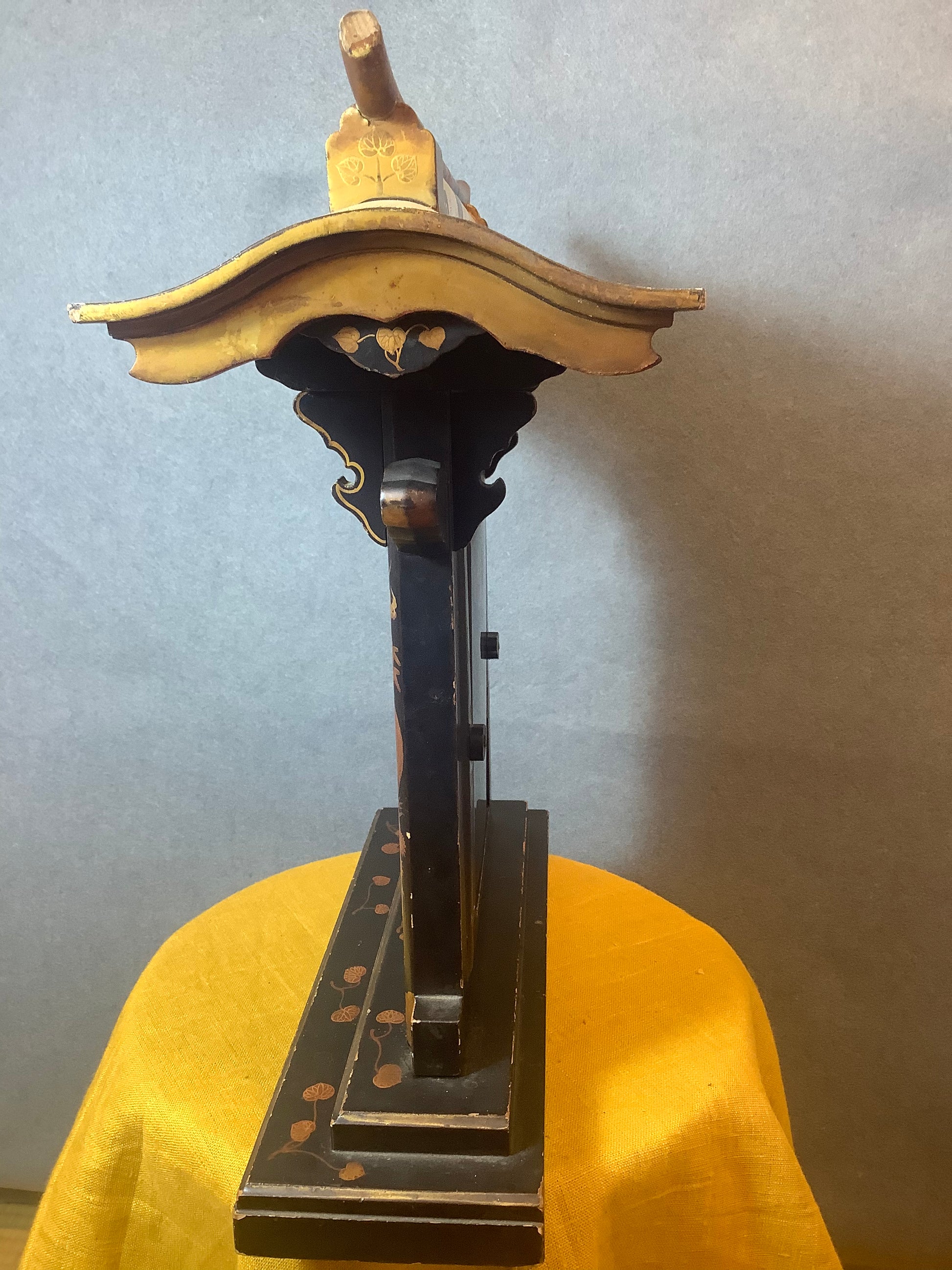 A fantastic Taisho period lacquered frame in the form of a shrine. Black lacquer body with gilded decoration.