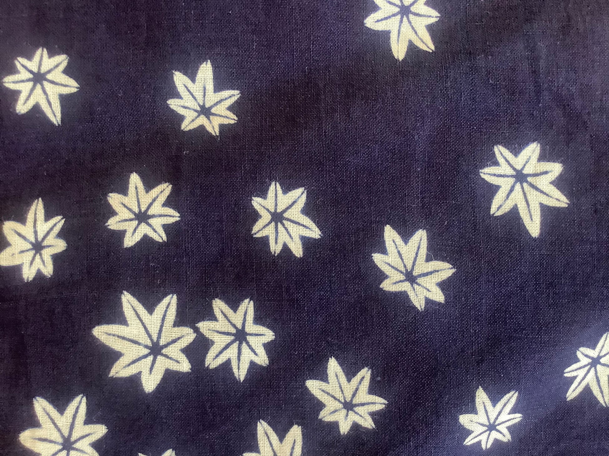 Cotton yukata in navy and white, with scattered maple leaves. Condition is excellent.