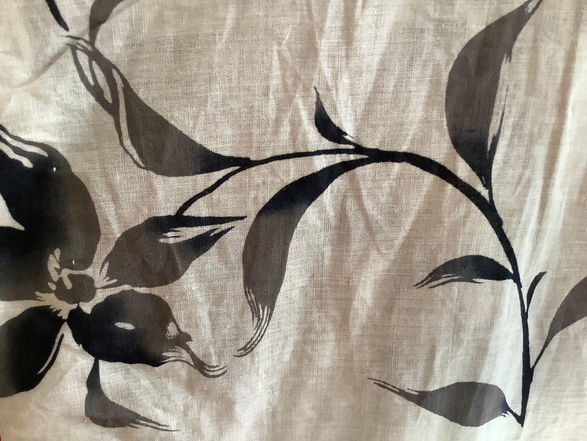 Vintage white linen yukata with tasteful pattern of sumi drawn flowers. The linen is slightly discoloured, but should wash up well. Condition is excellent.